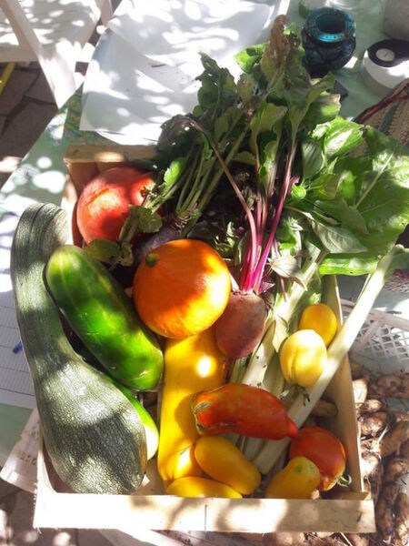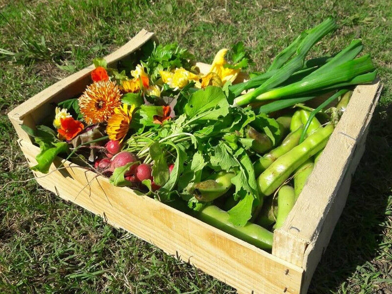 Sont proposés des abonnements pour des paniers hebdomadaires de fruits et légumes bio, issues de la permaculture et récoltés manuellement.