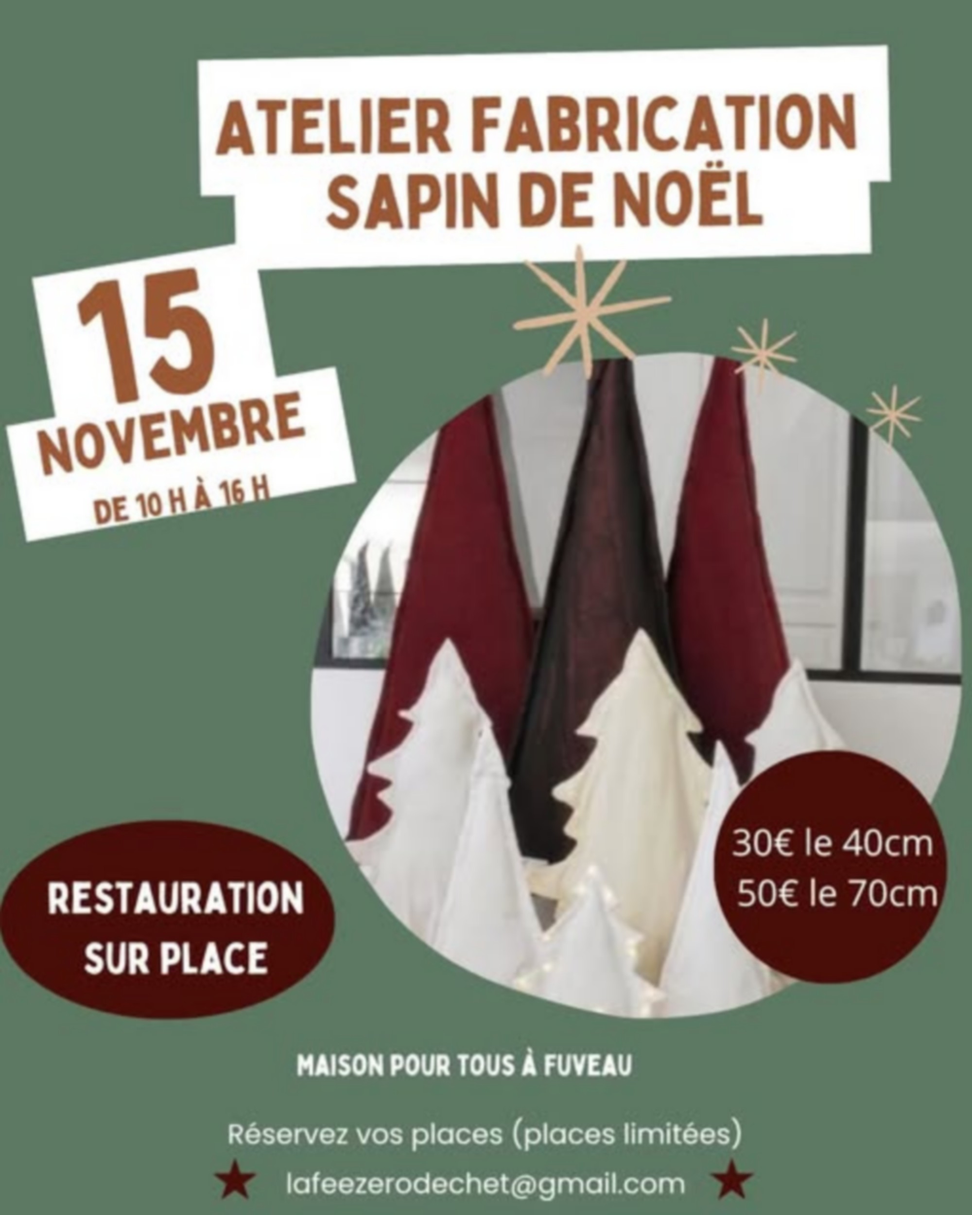 Atelier créatif, fabriquer son sapin de Noel en tissu, guidée par la créatrice La Fée l’a Fait et l’équipe de La Fée Zéro Déchet.