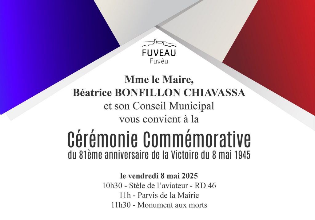 Programme :9h45 : rassemblement devant la Stèle de l'Aviateur Canadien10h : cérémonie10h30 : rassemblement devant la Mairie 10h45 : remise des décorations11h20 : défilé de la Mairie jusqu'à la Place du Souvenir Français11h35 : cérémonie devant le Monument aux Morts12h30 : fin de la cérémonie