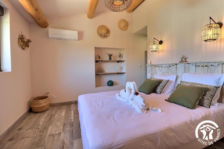 Climatisation réversible. Jacuzzi privatif accessible de mai à septembre, en supplément le reste de l'année (fermé par économie d'énergie en décembre, janvier et février). Draps et linge de toilette inclus (si changement de linge demandé, celui-ci sera facturé : 10 € / pers. pour le linge de toilette et 20 €/lit pour les draps et 5 € pour les 2 torchons). Ménage en option.