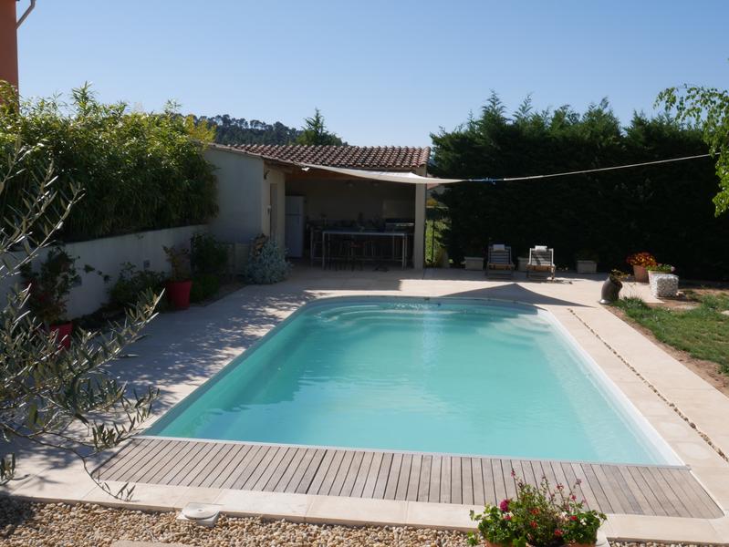 Attenant, un poolhouse composé d'une cuisine d'été équipée d'un évier, frigo, plaque de cuisson, plancha... Ainsi qu'une salle de douche avec douche à l'italienne, lavabo et WC, une grande terrasse avec chaises longues, voile d'ombrage et parasol.